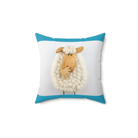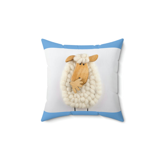 Sheep Pillow Case - Light Blue and White Colors - Faux Suede Square Pillow Case