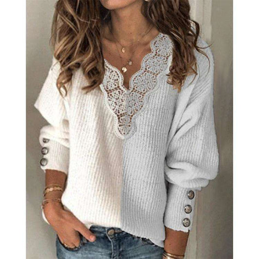 Solid V-neck Loose Long Sleeve Sweater - Two Colors