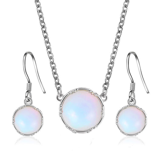 Cute Moon - Round & Blue Earrings & Necklace Set