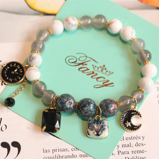 Natural stone agate cat bracelet